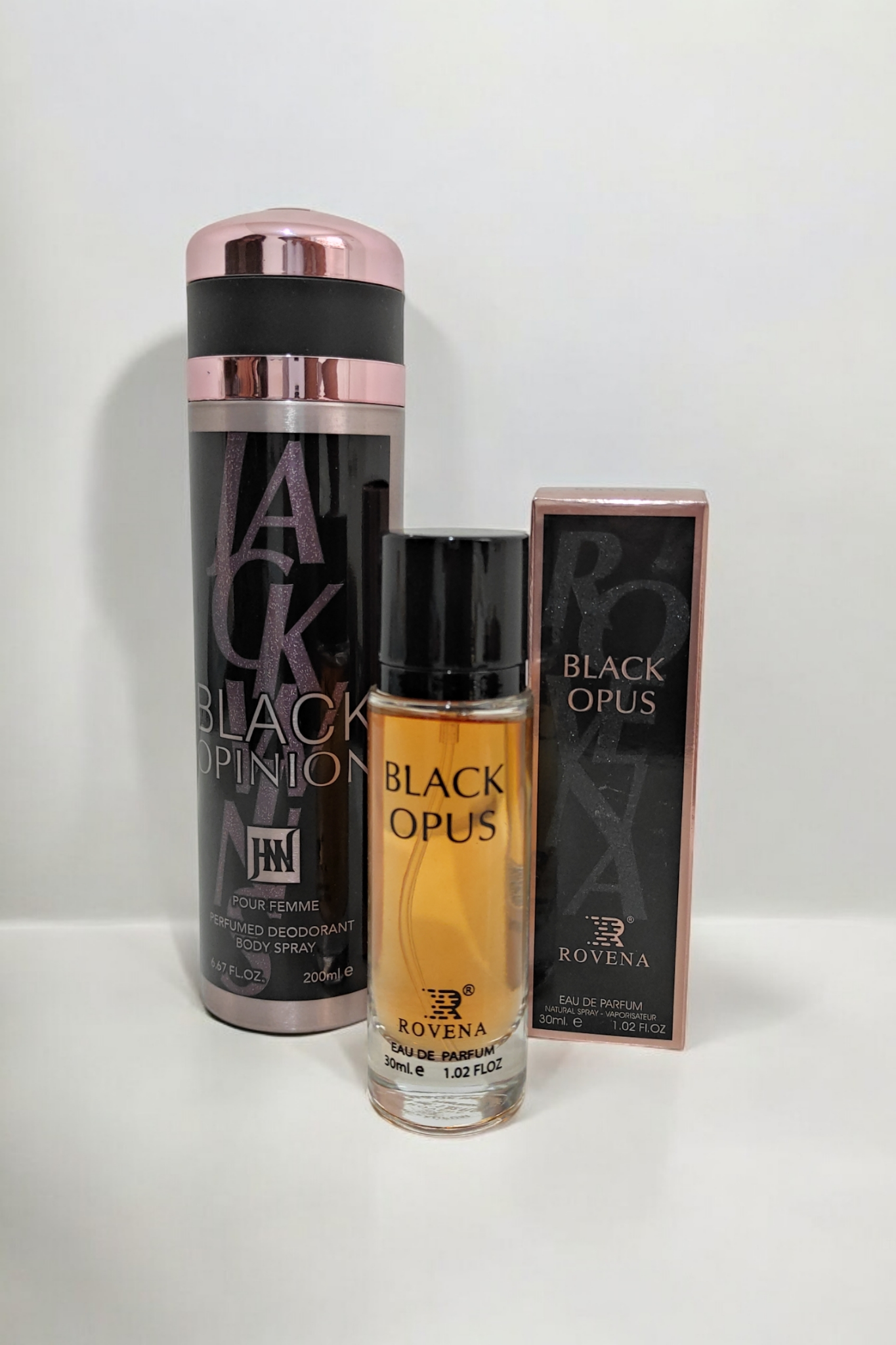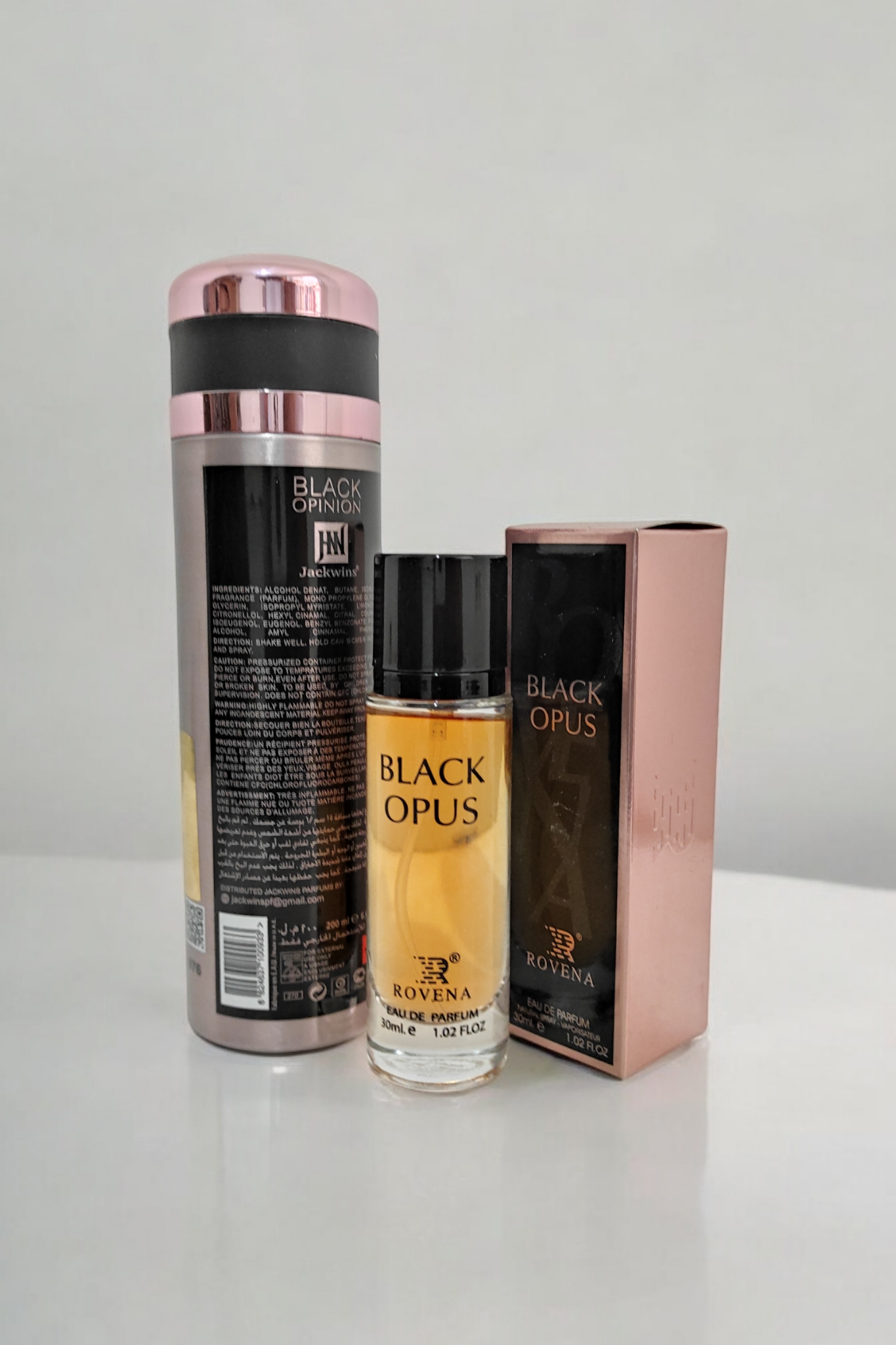 ست مرموز و شیک بلک اوپیوم | عطر ۳۰ میل + اسپری ۲۰۰ میل | Rovena
